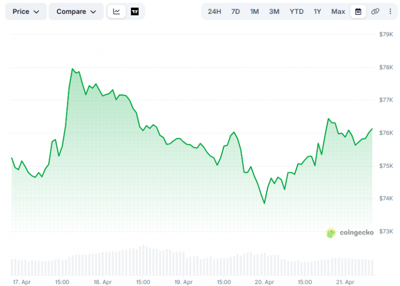 The cryptocurrency market saw a renewed uptick over the past 24 hours, with many leading digital assets flashing in green. Bitcoin (BTC) soared past $76,000, while popular altcoins such as Stellar (XLM), Toncoin (TON), and others...